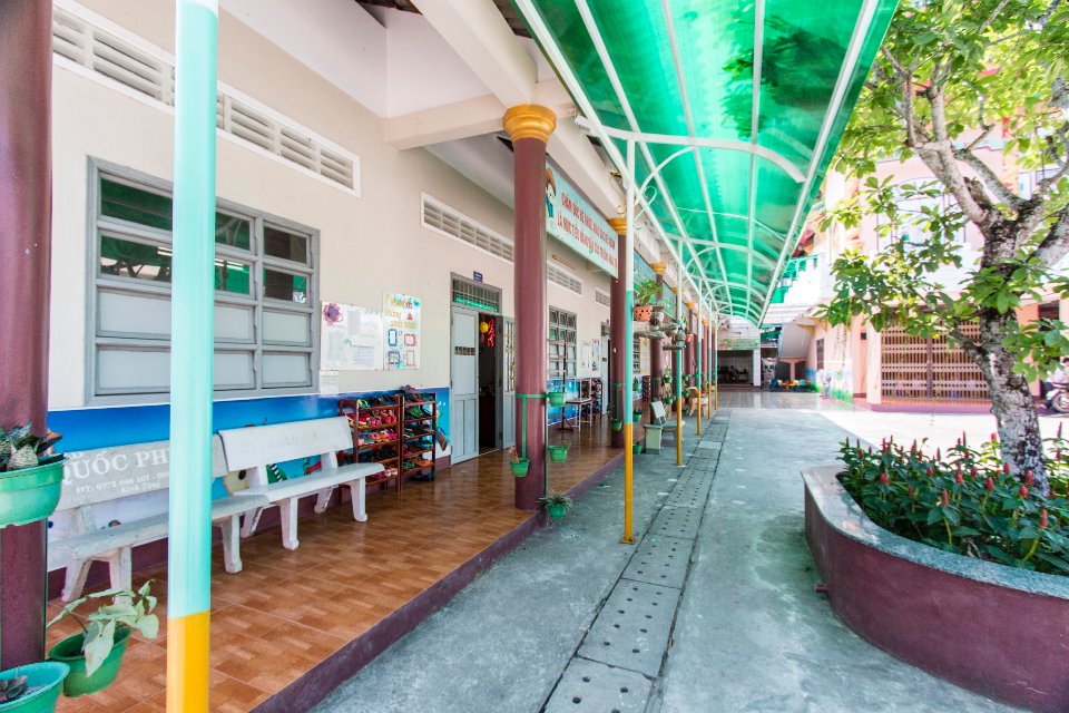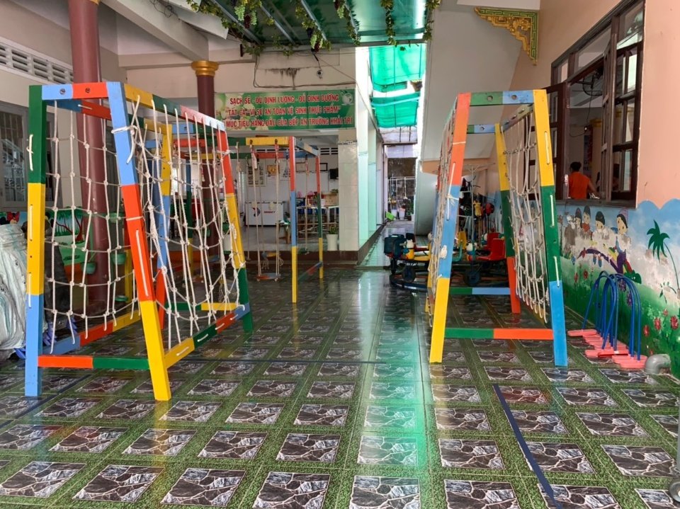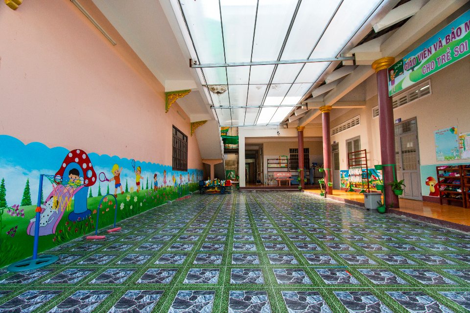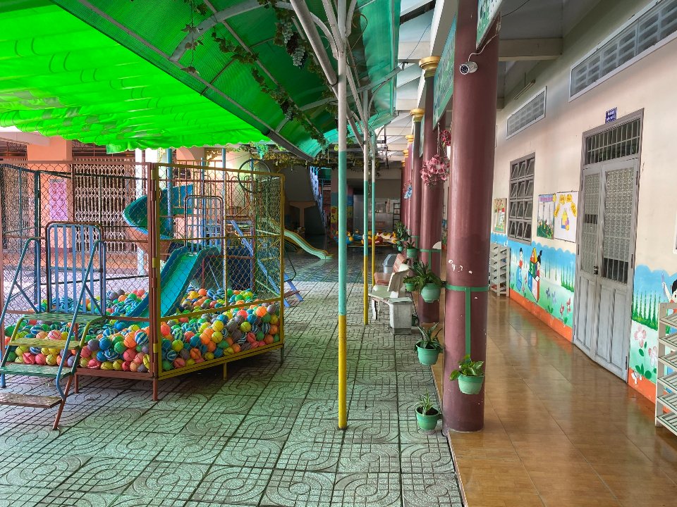 Cơ sở vật chất rộng rãi, có đầy đủ sân chơi, sân học thoáng mát, sạch sẽ dễ dàng cho các bé tăng vận động giải phóng năng lượng hàng ngày.